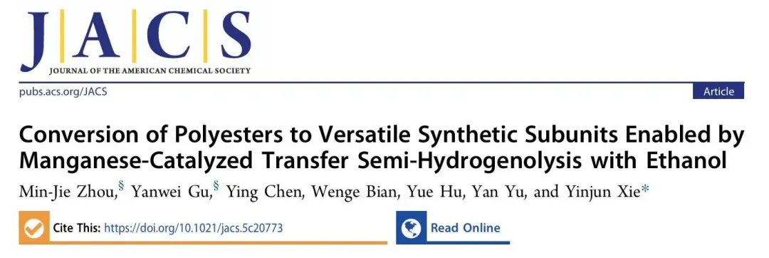 近日,中国科学院宁波材料技术与工程研究所谢银君、周敏杰团队在国际权威期刊《美国化学会志》发表研究成果,提出一种以锰为催化剂、乙醇为氢源的新策略,将废弃聚酯选择性地转化为高附加值化学品。该方法为废塑料化学回收提供了绿色、经济的新路径。