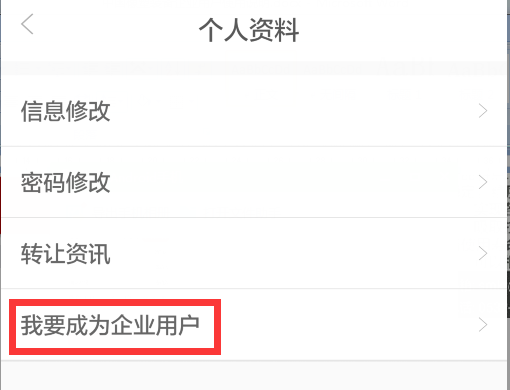 如果您使用了第三方(微信、QQ、微博)登陆,或已经申请了个人用户,可在用户中心-个人资料中,找到“我要成为企业用户”项点击进入。