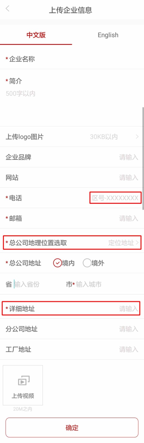 ★填报信息时,请特别注意,中文信息和英文信息的上传是完全分开的。您可以根据企业的规划,在中英文版企业黄页中填报完全不同的内容。所以请在填报时,每完成一页的信息填报后一定按“确认”后再继续下一项内容的填报。