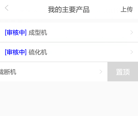 您上传完的企业主要产品、专利、专有技术、定点与品牌产品内容,均可在上传后就马上通过向左滑选择置顶,以设置相关信息的发布顺序。