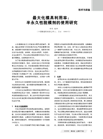 半永久性脱模剂可在模具表面形成薄层,能够承 力,这在脱模阶段是必要的。根据最需要优化的性