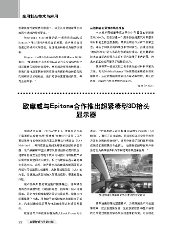 器。该产品采用3D显示屏替代传统投影必需的镜面。 验方面为终端客户和汽车制造商带来显著提升。”
