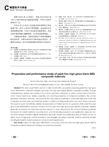 [3] 金敏善,洪重奎,黄英超等 .ABS/PMMA 合金组成与性能的 [12] 王涛,谭璞,闫闯,等 .ABS 与 PMMA 的共混合金及性能研