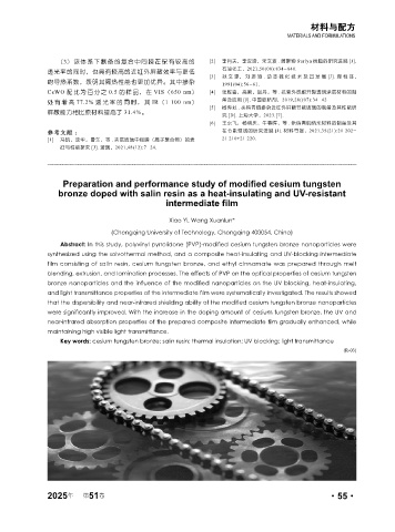 CsWO 配比为百分之 0.5 的样品,在 VIS(650 nm) [4] 张群喜,高衡,赵丹,等 . 抗紫外线耐开裂透明涂层材料的制