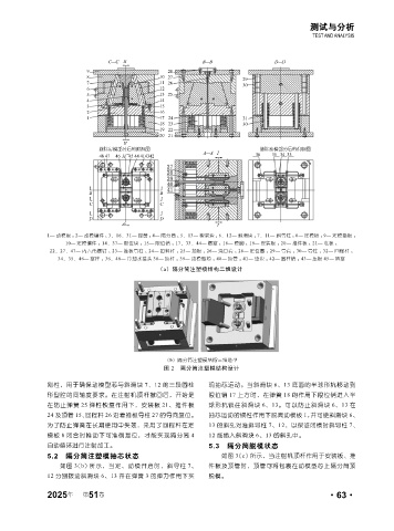 如图 3(b) 所示,当定、动模开启时,斜导柱 7、 件板及顶管时,顶管可将包裹在动模型芯上隔分筒顶