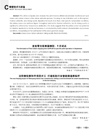 Key words: pinless screw; rubber extrusion; mixing quality; thermal uniformity