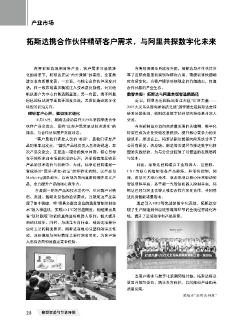 “客户是我们研发人员的‘老师’,是我们研发产 键抓手。座谈会上,拓斯达副总裁姜向前系统分享了