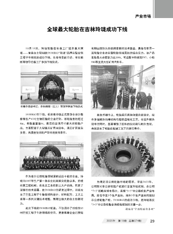 工程子午线轮胎成功下线,长春市委副书记、市长顾 单胎最大承载能力达100t,可适配卡特彼勒797、小松