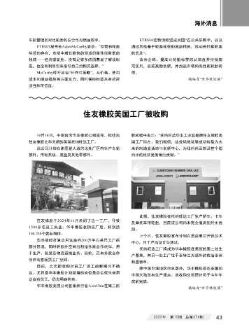 10月14日,中国台湾华丰橡胶公司宣布,拟收购 新闻稿中表示:“托纳旺达华丰工业园是原住友橡胶美